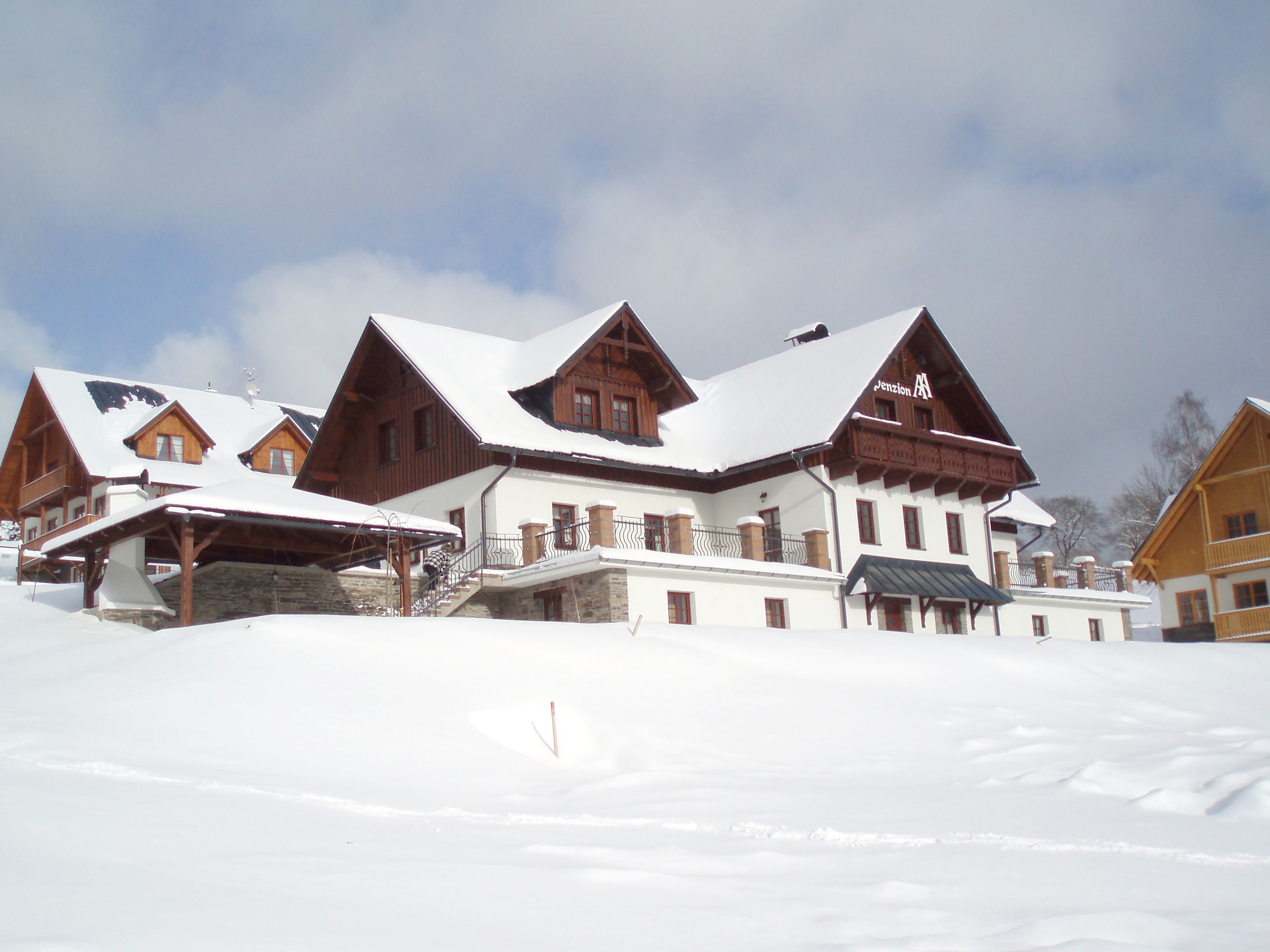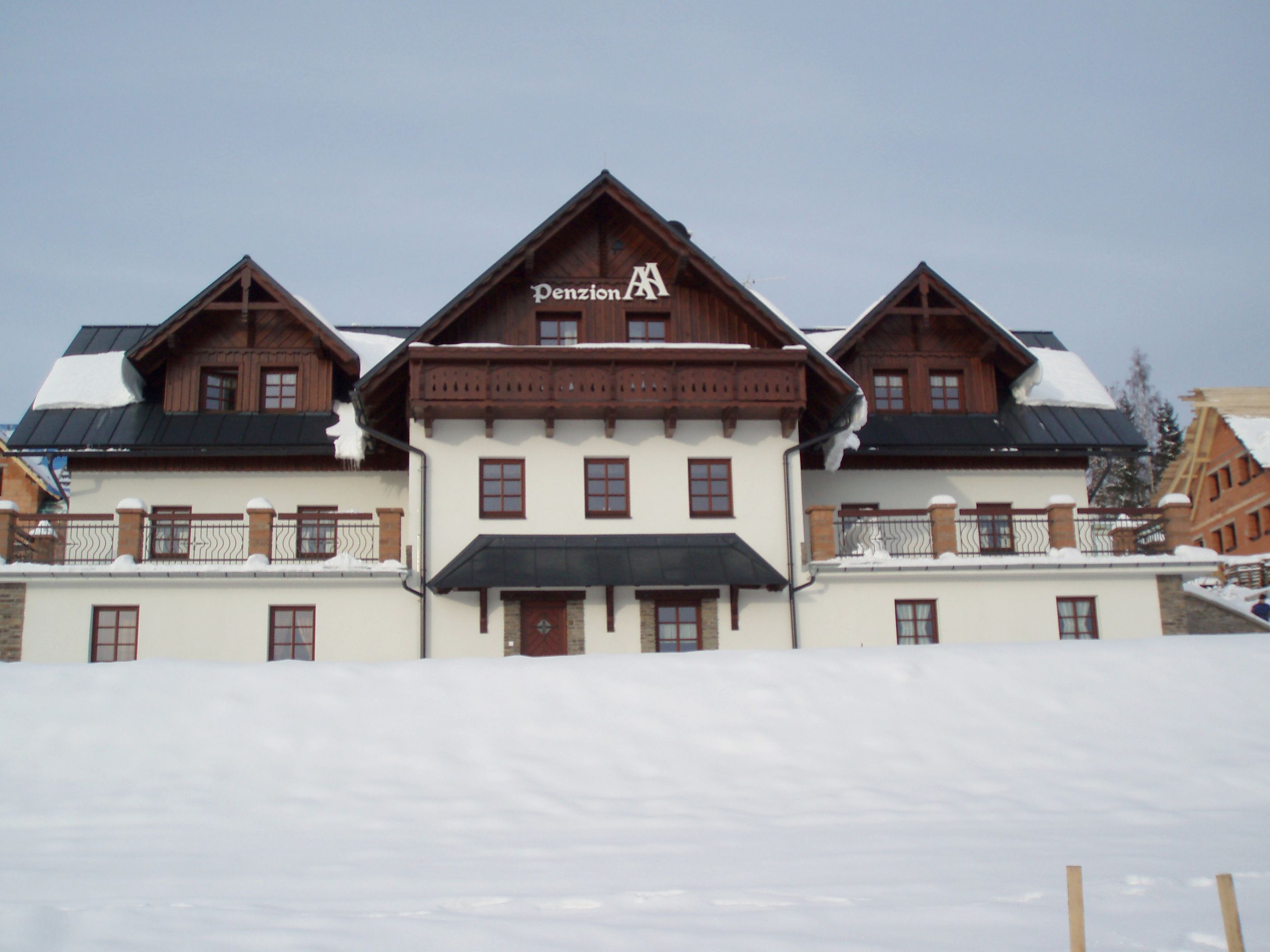 Penzion AA má 3 podlaží, všem klientům jsou k dispozici 2 terasy a pergola.